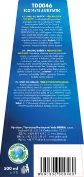 DRYER ANTISTATIC sprej do sušičky místo ubrousků pro odstranění elektrostatického náboje z prádla